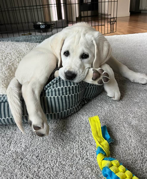 “We are in love with our puppy…he’s so sweet can’t imagine life without him…everyone stops me in the street…where did you get him, he’s so beautiful, all while he flops over for a belly rub…he’s easy going and full of love…smart.. thank you Jessica!!!!” -A. Waite